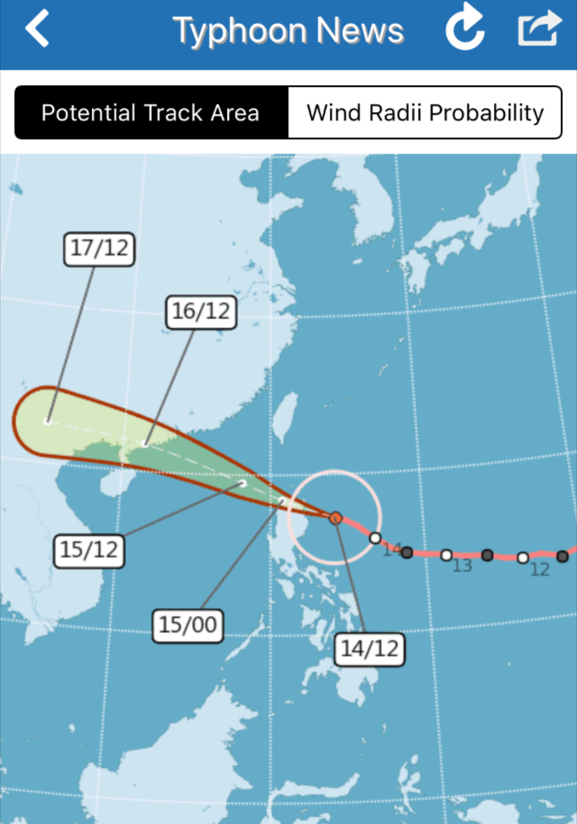 Die Wetter- App des Taiwan Central Weather Bureau hat bereits mehrere Tage über diese Taifun informiert. In Europa interessanterweise kein Thema (siehe Blog Kachelmann).